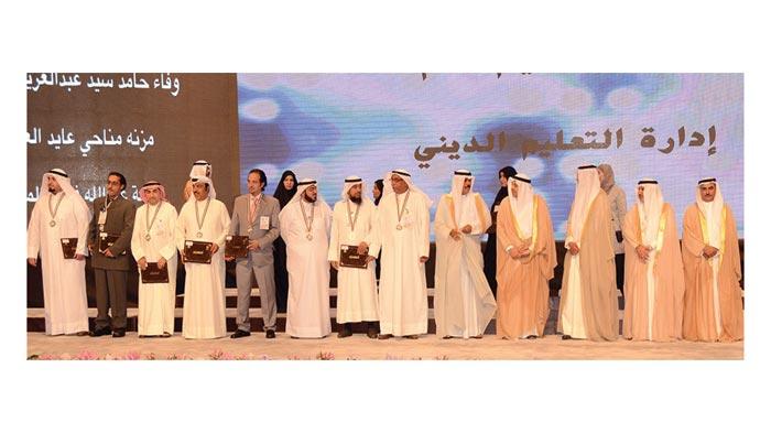 ووجه الصانع حديث للمكرمين قائلا: انكم تجتمعون اليوم في غبطة واعتزاز لجني حصاد غرسكم المبارك ويا له من حصاد يانع وتكريم عظيم ان يتم برعاية سمو الأمير وحضور مبارك من سمو ولي عهده الامين، وانكم تعلمون جميعا صفات المعلم المبدع الذي يتم تكريمكم اليوم لتمتعكم بها، انه المعلم الذي يثق بذاته ويطور قدراته، المعلم المخلص المثابر والمتعاون في عمله، المعلم الذي يبادر بتقبل التغيير الايجابي بالحوار والابتكار، المعلم الذي يرتقي بتعليم طلابه بعيدا عن التلقين، المعلم الذي يواكب التطور التكنولوجي والمعلومات المتسارع ويوظفه في مهنته بفاعلية، المعلم الذي يزرع القيم النبيلة في نفوس الأبناء حتى تكتمل شخصياتهم خلقا وعلما، وقبل هذا كله انه المعلم الذي تغمر السعادة روحه لرؤية وجوه طلابه لحظة دخوله الفصل متوسما فيهم املا مزهرا ونواة غد مشرق لهذا الوطن الغالي فهو معلم يحمل على عاتقه سمو مجتمعه ورقي أمته، هو المعلم الذي قال فيه الشاعر: