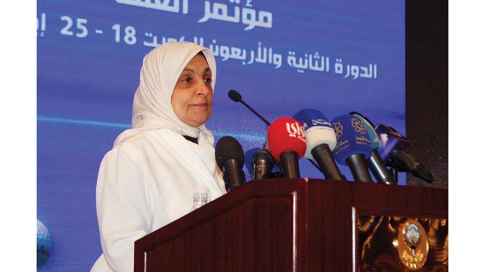 واكدت اهتمام دولة الكويت بالعمل العربي المشترك الذي يستهدف الخير للانسان ويزيل العقبات التي تعوق تقدمه ورخاءه، مشيرة الى أنها تسعى لمواجهة التحديات وحل المشكلات التي تواجه الدول العربية في كافة المجالات وتحقيق الطموحات المشروعة للشعوب التي تنشد الاستقرار والسلام.