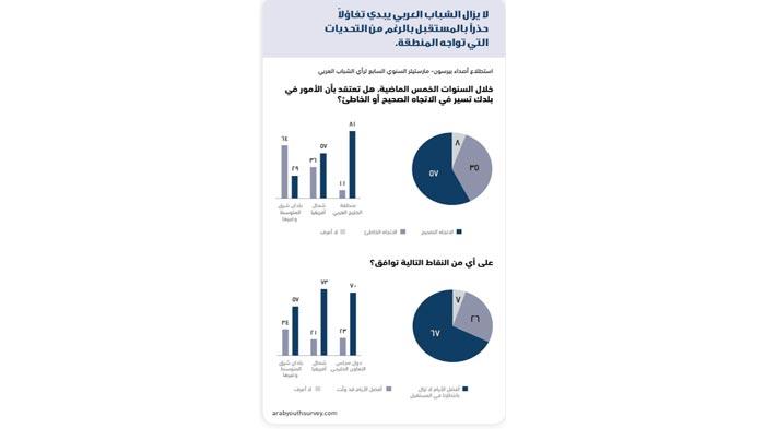 -4 لا يزال الشباب العربي يبدي تفاؤلاً حذراً بالمستقبل بالرغم من التحديات التي تواجه المنطقة.