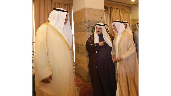 الشيخ ناصر والشيخ صباح الخالد وخالد الجارالله خلال استقبال الدبلوماسيين