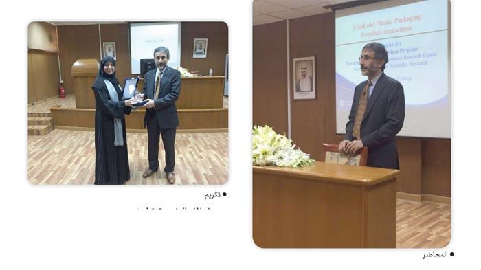 تحت رعاية عميد كلية العلوم الصحية د.جاسم الأنصاري نظمت الكلية التابعة للهيئة العامة للتعليم التطبيقي والتدريب ندوة بعنوان (التغليف البلاستيكي واحتمالية تفاعله مع الأطعمة) ألقاها د.طارق العاتي من برنامج الغذاء والتغذية بمعهد الكويت للأبحاث العلمية، بتنظيم أ.هيا العميرة من قسم العلوم الطبيعية، وذلك في قاعة السمينار بكلية العلوم الصحية - بنات.