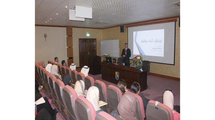 ضمن برنامج الأسبوع الطلابي الثقافي الأول استضاف مكتب العميد المساعد في كلية العلوم الحياتية بجامعة الكويت متمثلة في وحدة الشؤون الطلابية مجموعة من المختصين والمهتمين في مجالات متعددة تخدم الأقسام العلمية في الكلية، وضمن فعاليات الافتتاح قدم مدير مركز رجيمي الصحي الدكتور عبدالله المطوع محاضرة تحت عنوان «صحتك الشخصية أثناء عامك الدراسي». تطرق خلالها د.عبدالله المطوع الى كيفية الحفاظ على طاقة الطالب خلال يومه الدراسي وعلى تحصيله العلمي، وزود أيضا الطلبة والطالبات بخطط ونظام صحي سهل ممكن اتباعه خلال اليوم الدراسي. أما في اليوم الثاني فقدمت المختصة في علم الغذاء والتغذية أ.دانا السالم محاضرة في الهواء الطلق تحت عنوان «ثقافتي طريق تميزي»، تطرقت خلالها الى أهمية الماء في حياة الطالب الجامعي، وأيضا أهمية تنوع الغذاء خلال اليوم الدراسي الذي يساعد الطالب على التوازن بين العقل والصحة. وبدورها تطرقت المختصة في جانب اضطرابات التواصل واللغات الأستاذة لطيفة السالمي الى «الصوت» وكيفية المحافظة على الأحبال الصوتية التي تساعد الطلبة على التواصل وتوصيل المعلومات، ركزت أيضا على كثرة تعرض الطلاب والطالبات لبعض الأمراض الموسمية وكيفية تجاوزها أو التعرض لبعض الوعكات الصحية التي تسبب خللا في الاحبال الصوتية فتمنعنا من المشاركة في الفصل. وفي اليوم الأخير قدم أحمد علي الدويسان محاضرة ألقاها على الطالبات تحت عنوان (المعادلة الصعبة)، التي كانت تأخذ الجانب التحفيزي والتوعوي لمستقبل الطالبة في الجامعة منتهية بمسيرتها العملية، استمتع الحضور بعدد من الاختبارات والالعاب التي تستكشف من خلالها الطالبة مهاراتها الشخصية وقدرتها على تجاوز الصعوبات الحياتية وتجعل منها شخصا ذا خبرة ومسؤولية لحياتها العملية والعلمية.