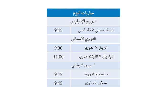 كذلك يلتقي سيلتا فيجو مع ملقة وايبار مع اشبيلية والتشي مع ديبورتفو لاكورونا اليوم.