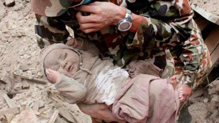 وفي حادثة مشابهة في غرابتها، كانت فرق الانقاذ انتشلت في 30 أبريل طفلاً يبلغ من العمر 4 أشهر حياً يرزق بعد مرور 22 ساعة على وقوع الزلزال المدمر، وأطلقت عليه الصحافة المحلية والعالمية تسمية الطفل المعجزة.