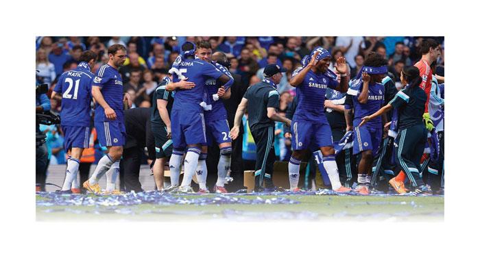 صدح نشيد النادي “الازرق هو اللون” في استاد ستامفورد بريدج المبتهج بينما انتزع تشيلسي لقبه الاول في الدوري الانجليزي الممتاز لكرة القدم في خمس سنوات بفوزه 0-1 على كريستال بالاس. ولم يقدم فريق المدرب جوزيه مورينيو عرضا ممتعا وكان هناك بعض التوتر مع صموده للدفاع عن تقدمه بهدف ايدن هازارد قبل نهاية الشوط الاول. ورفع الفوز رصيد تشيلسي الى 83 نقطة من 35 مباراة بفارق 13 نقطة عن مانشستر سيتي الذي ازال خيبة امل فقدان اللقب بالفوز 0-1 على مضيفه توتنهام هوتسبير صاحب المركز السادس. ووضع الهدف 22 لسيرجيو اجويرو هذا الموسم حدا لاربع هزائم متتالية لسيتي خارج ارضه. ويتقدم سيتي بثلاث نقاط على ارسنال في المركز الثاني قبل ان يلتقي الفريق اللندني - الذي تتبقى له خمس مباريات - خارج ملعبه مع هال سيتي المهدد بالهبوط يوم الاثنين. واشعل خامس انتصار لتشيلسي بفارق هدف واحد في مبارياته السبع الاخيرة الاحتفالات في المدرجات وفي كافة ارجاء الملعب بقيادة المهاجم المخضرم ديدييه دروجبا والقائد الموجود دائما جون تيري. ومع انهمار شرائط زرقاء من المدرجات تحت الشمس الساطعة اكمل لاعبو تشيلسي لفة شرفية بينما اطلق المشجعون الهتاف الساخر الشهير “تشيلسي الممل”. وسجل صانع اللعب ايدن هازارد الهدف الحاسم في الدقيقة 45 عندما تابع الكرة براسه الى الشباك بعد ان تصدى الحارس جوليان سبيروني لتسديدته الضعيفة من ركلة جزاء.