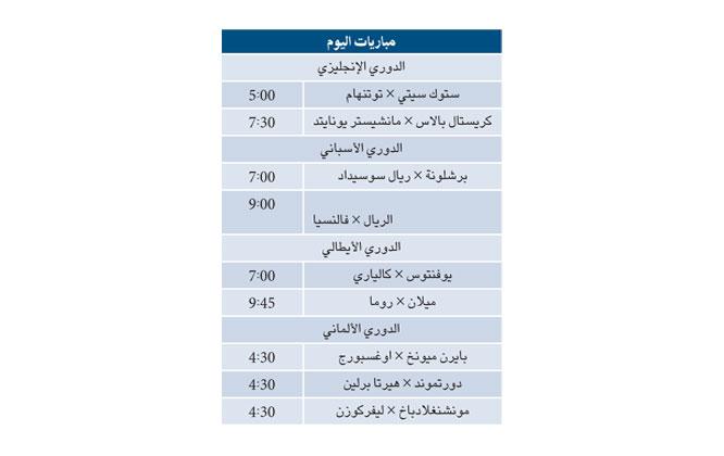 وستخف الضغوط من على كاهل يونايتد لو تغلب اليوم على مضيفه كريستال بالاس ميلان × روما يتطلع روما الى تحقيق الفوز على مضيفه ميلان اليوم للحفاظ على موقعه في المركز الثاني بجدول مسابقة الدوري الايطالي لكرة القدم متقدما على جاره ومنافسه التقليدي العنيد حيث يتأهل الفريق الفائز بالمركز الثاني في نهاية الموسم مباشرة الى دور المجموعات بدوري أبطال أوروبا في الموسم المقبل.