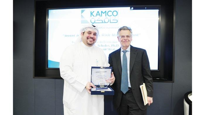 وقدم البروفيسور مايرون شولز، المتحدث الرئيسي في الحدث، الذي عقد مؤخرا في نادي رجال الأعمال ببرج كيبكو، عرضاً تقديمياً تحت عنوان ’توزيع الأصول وادارة المخاطر’، بحضور لفيف من العملاء والمستثمرين وكبار موظفي المجموعة، اعقبه تسليم درع تكريمية من قبل الرئيس التنفيذي لشركة كامكو فيصل صرخوه.