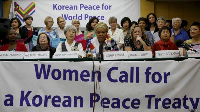 عواصم – وكالات: وصلت مجموعة من الناشطات من مختلف دول العالم، بينهن اثنتان من الفائزات بجائزة نوبل، الى عاصمة كوريا الشمالية بيونغ يانغ استعدادا للمشاركة في مسيرة تعبر المنطقة منزوعة السلاح بين الكوريتين من أجل شد انتباه العالم لضرورة ايجاد حل للتوتر السائد في شبه الجزيرة.