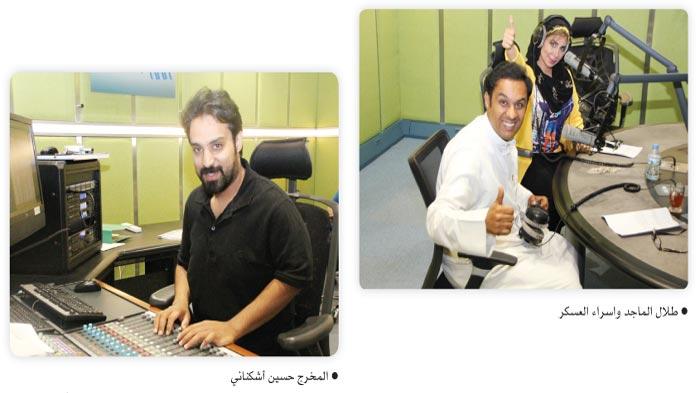 متابعة آلاء الوزان: يقدم الثنائي المتميز المذيع طلال الماجد والمذيعة اسراء العسكر البرنامج الاذاعي «لايف أف أم» على أثير محطة كويت أف أم 103.7 من الأحد الى الخميس ويبدأ في تمام الساعة التاسعة حتى العاشرة مساء. البرنامج اعداد نايف النعمة وعثمان سليمان، اخراج حسين أشكناني، مخرج منفذ ناصر الجناع، المتابعة والتنسيق أمينة المسري، هندسة اذاعية خالد المزيني. «الوطن» زارت احدى حلقات البرنامج ولمست روح الفريق الواحد والجهد المبذول من أجل ان يخرج العمل في أفضل صورة، وشاهدنا كيمياء حلوة بين اسراء وطلال، وتفاهما واضحا يضفي بهجة على البرنامج. وشهدت الحلقة مداخلات فنية عديدة، ونقاشات ثرية تناولت عدة مواضيع تخص المجال الفني، اضافة الى مشاركات المستمعين الهاتفية وتفاعلهم مع القضايا المطروحة.