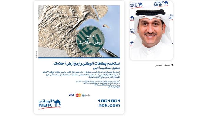 الخضر: «الوطني» يكافئ عملاءه هذا العام بجائزة استثنائية تلبي تطلعاتهم وتفتح أمامهم آفاقاً جديدة | | فرص للفوز مقابل كل دينار يتم انفاقه باستخدام بطاقات «الوطني» المصرفية داخل وخارج الكويت | |