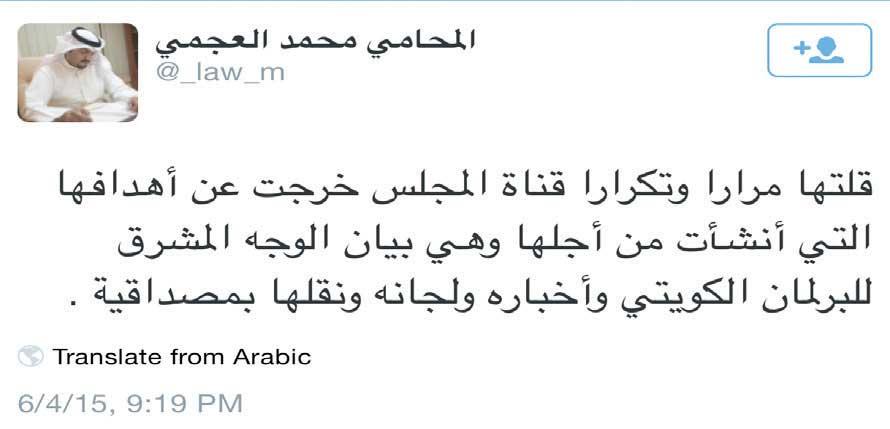 الاستئناف تلغي حكماً لمرزوق الغانم ضد قناة «الوطن»