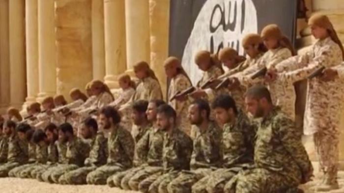 بث تنظيم داعش أمس السبت فيديو يظهر إعدام 25 من قوات نظام الأسد وسط آثار مدينة تدمر، وتحديدا في مسرحها الروماني.