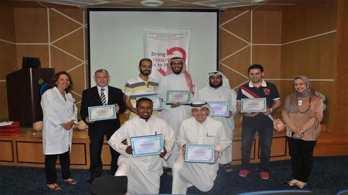 وتابع : لتحقيق هذا الغرض فإن المستشفى مستمر في تنظيم سلسلة من الدورات المتعلقة بتعلم الإسعافات الأولية الرئوية والقلبية بالتعاون مع جمعية القلب الأمريكية من خلال توفير محاضرين ومدربين على أعلى مستوى من الكفاءة لمنح الثقة المطلوبة للمتدرب ليقوم بالتعامل بشكل سليم وتقديم الإسعافات اللازمة في وقت الحاجة إليها .