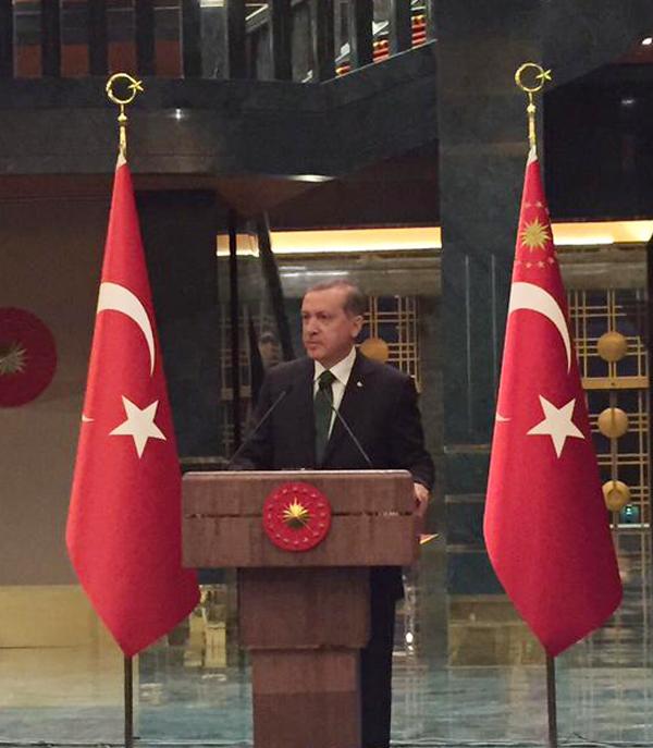وأوضح أردوغان في كلمة ألقاها على هامش مشاركته في حفل إفطار في القصر الرئاسي أقامه على شرف سفراء الدول الأجنبية المعتمدين لدى أنقرة أمس أن الأزمة السورية المستمرة منذ 5 أعوام تشكل تهديدا للأمن والسلم العالميين داعيا المجتمع الدولي إلى عدم النظر إلى المسألة السورية "عبر منظار داعش".