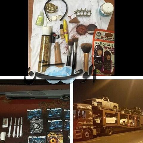 استمرار للجهود الجبارة التي يقوم بها رجال امن محافظة الاحمدي بقيادة مديرها العام العميد عبدالله سفاح الملا في ضبط الوضع الامني وفرض هيبة القانون و توفير الامان للمواطنين والمقيمين من خلال الحملات الامنية المستمره على جميع نطاق المحافظة ومن بين هذه الحملات تم شن مساء اليوم حملة امنية على منطقة لؤلؤة الخيران بمواقع مختلفه وتم من خلالها ضبط 4 اشخاص من بينهم مطلوب مدين على مبلغ وقدرة 940 دينار وبحوزتهم قطعة (حشيش) و عدد 4 أبر و18 حبة مخدرة و بقايا سيجارة حشيش وكذلك ورق لف سلاح هوائي بالاضافة الي ضبط وافد عراقي الجنسية مطلوب للحبس على ذمة قضية وضبط مواطن مطلوب مدين ايضا كما تم ضبط مواطن متشبه بالجنس الاخر ومعه حقيبه نسائية بداخلها سيلكون ودوات تجميل ( مكياج ).