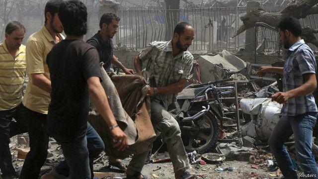واعلن المرصد السوري لحقوق الانسان "ارتفع الى 96 بينهم مواطنتان واربعة اطفال على الاقل عدد الشهداء الذين توثق المرصد من استشهادهم حتى الان .. جراء مجزرة نفذتها طائرات النظام الحربية باستهدافها لسوق في مدينة دوما بغوطة دمشق الشرقية". وحذر بان عدد القتلى "مرشح للارتفاع بسبب وجود جرحى في حالات خطرة".