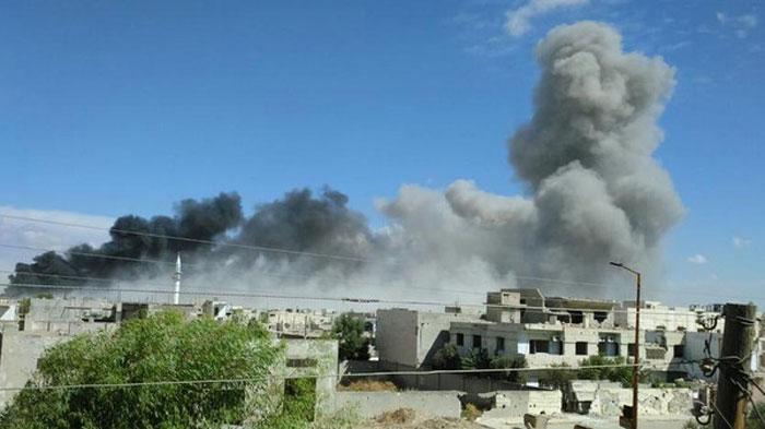 صورة نشرها ناشطون لقصف من طائرات روسية في ريف حمص