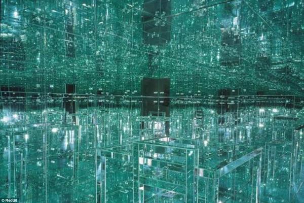 وعن قصة هذه الصورة، تقول "الديلي ميل": إن الفنان الأمريكي من أصل يوناني لوكاس سمارس كان قد أنشأ "حجرة المرايا" للفنون عام 1966 من القرن الماضي، وهي كما تبدو حجرة تغطي المرايا كل أرضيتها وحوائطها وحتى السقف، وأيضاً الأثاث الموضوع مكون من مواد شفافة.
