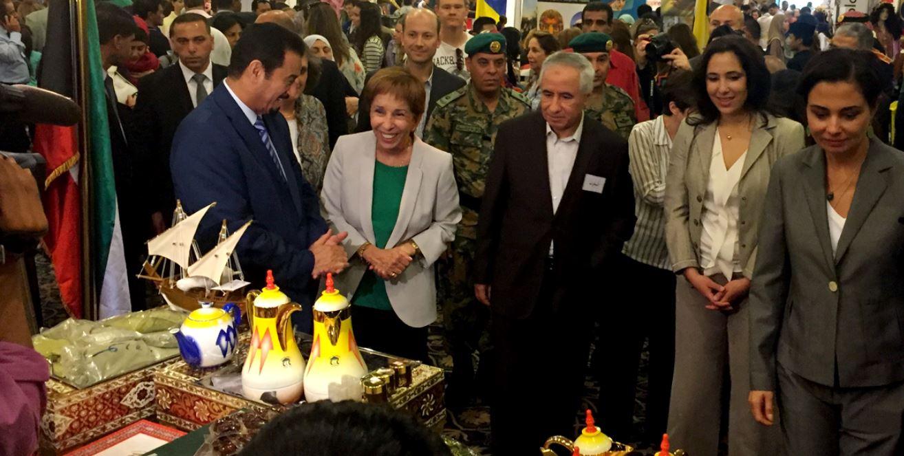 وثمنت مشاركة الكويت المستمرة ممثلة بسفارتها لدى الأردن ب(البازار الدبلوماسي) الخيري السنوي والمخصص ريعه للأيتام والأعمال الخيرية التي تشرف عليها مبرة (أم الحسين الخيرية).