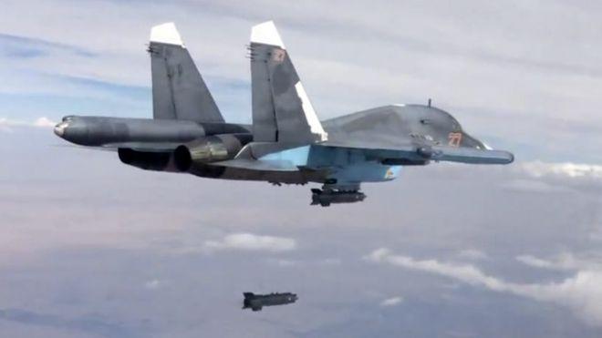 وبدأت روسيا ضرباتها الجوية في سوريا في الـ 30 من سبتمبر/ أيلول. وتقول روسيا إنها تستهدف مسلحي تنظيم الدولة الإسلامية والجماعات الجهادية الأخرى، بعد أن طلبت سوريا الدعم العسكري من روسيا.