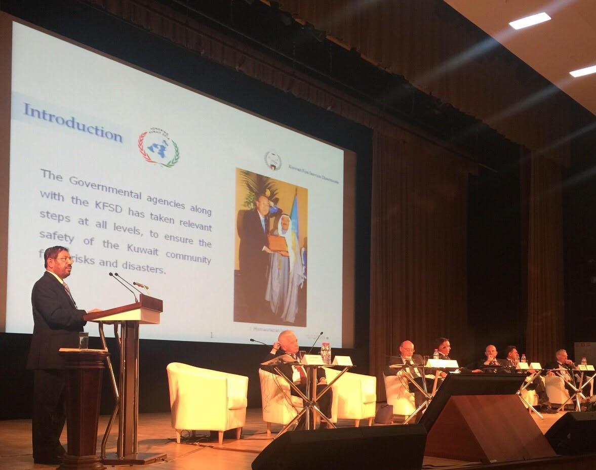 بهذه الكلمات بدأ مدير عام الإدارة العامة للإطفاء الفريق يوسف عبدالله الانصاري كلمته من خلال مشاركة دولة الكويت مع وزراء وقادة الإطفاء والحماية المدنية في المؤتمر الدولي لإدارة الكوارث والأزمات المنعقد في موسكو، حيث قدم الفريق الأنصاري مادة اكاديمية تناولت مدى تقدم وتطور الإطفاء ونظم الحماية المدنية بدولة الكويت والدور الإنساني المناط بالإطفاء، حيث استهل كلمته من خلال المؤتمر الذي شارك فيه مكتب الشئون الإنسانية في الأمم المتحدة والمنظمة الدولية للحماية المدنية بالآتي: