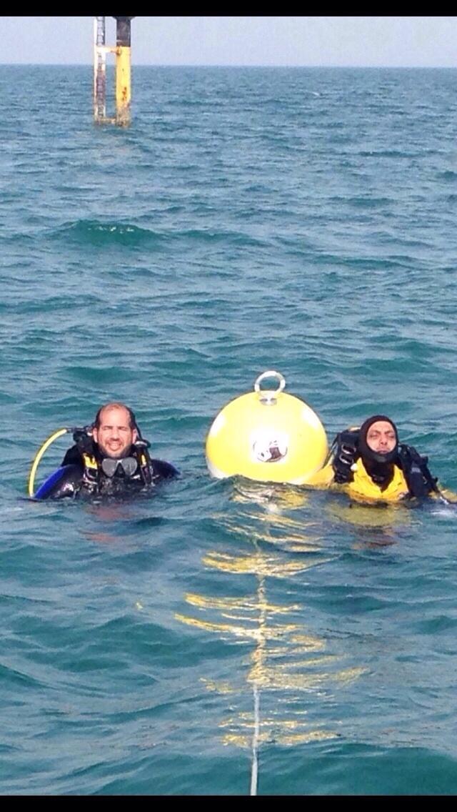 المدير العام للهيئة العامة للبيئة الشيخ عبدالله أحمد الحمودأثناء تفقده مع فريق الغوص  الشعب المرجانية الاصطناعية والأسماك والتنوع الأحيائي في محمية جا