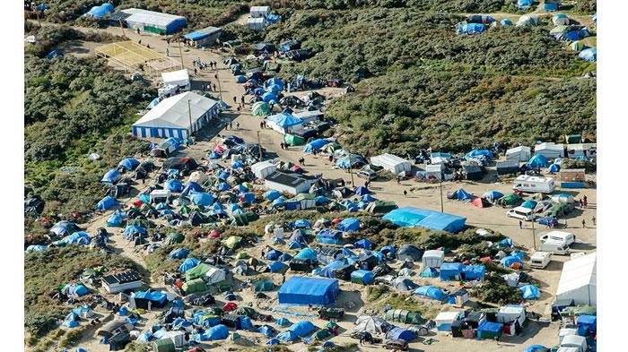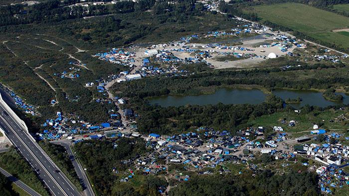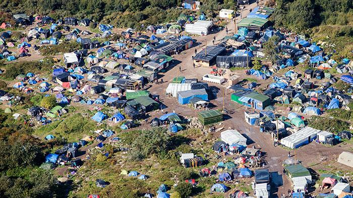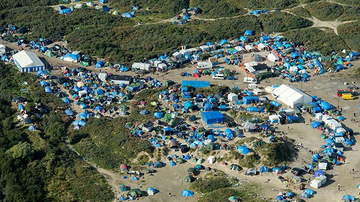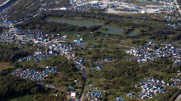 أظهرت صور التقطت من الجو ازدياد عدد للاجئين باطراد في "مخيم الأدغال" بكاليه -فرنسا، الذين يعيشون في الخيام على أمل الانتقال إلى المملكة المتحدة للعيش هناك.