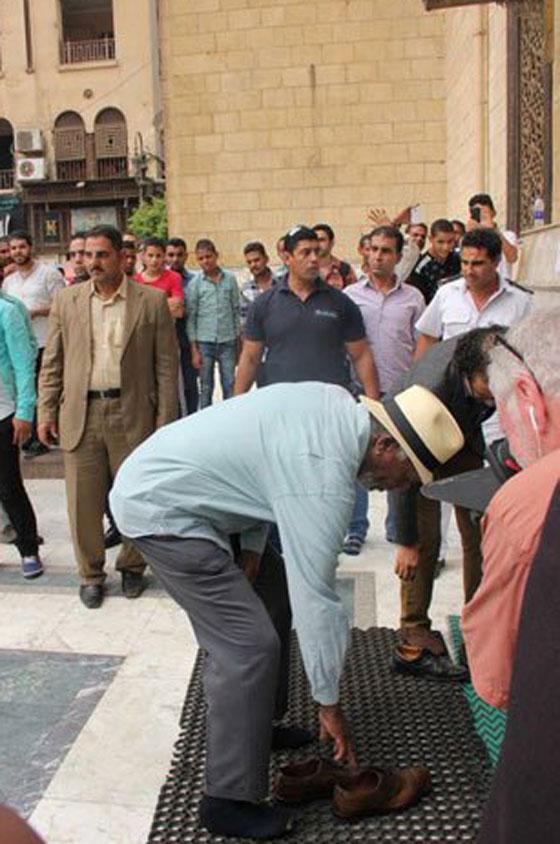 وتجمّع الكثير من المصريين حوله فور التعرّف عليه، والتقطوا بعض الصور التذكارية معه، وقاموا بمشاركتها عبر صفحاتهم الشخصية على مواقع التواصل الاجتماعية.