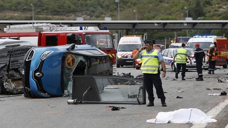 اعلنت السلطات الفرنسية اليوم سقوط نحو 42 قتيلا في حادث سير جنوب غرب البلاد. ونقلت وسائل الاعلام الفرنسية عن مصادر في اجهزة الاطفاء قولها ان "حادث تصادم عنيف وقع بين حافلة ركاب وشاحنة قرب بلدة ليبرون جنوب غرب فرنسا". واضافت ان النيران اندلعت في المركبتين بعد الاصطدام المباشر بينهما مما ادى الى مصرع ما لايقل عن 42 شخص فيما تمكن ثمانية من النجاة. ولم يضف المصدر مزيدا من التفاصيل.