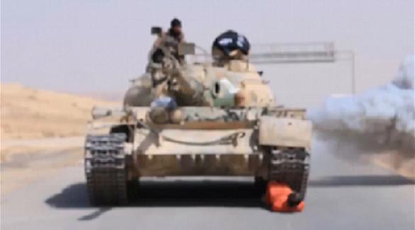 تداولت مواقع مقربة من داعش فيديو جديداً نشره للتنظيم يُظهر تنفيذ حكمه في جندي من قوات النظام، دهساً بدبابة.