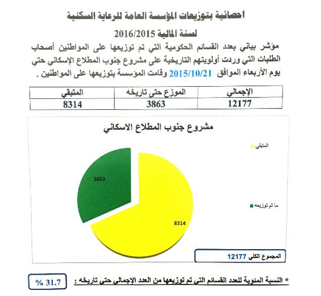احصائية بتوزيعات المؤسسة العامة للرعاية للسكنية