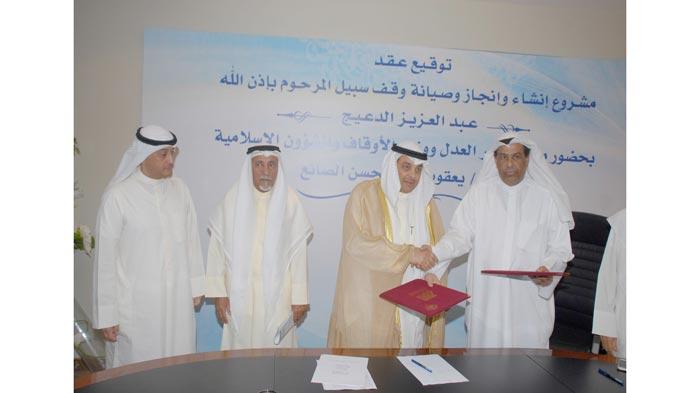 جانب من حفل توقيع مشروع وانجاز وصيانة وقف سبيل المرحوم عبدالعزيز الدعيج بحضور وزير العدل ووزير الاوقاف والشؤون الاسلامية يعقوب الصانع