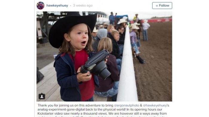 يقول آرون هيوي: "في بداية الرحلة أعطيت هاوكي كاميرا تقليدية، إلا أنني اكتشف مع نهاية الرحلة، أنه التقط نحو 1000 صورة، هنا قررت إنشاء حساب خاص به على أنستجرام ليتبادل الصور والتجارب مع العالم، حتى أصبح لديه 104 ألف معجب، وتم تصنيفه ضمن أعلى 100 حساب على أنستجرام.