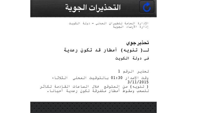 حذرت إدارة الأرصاد الجوية من عدم استقرار الطقس خلال الساعات المقبلة مشيرة إلى التوقعات بتكاثر السحب وهطول الأمطار الرعدية أحيانا.
