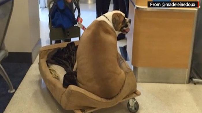 الكلب "هانك الدبابة" يسافر على مقعده الخاص في الدرجة الأولى.. والسبب؟