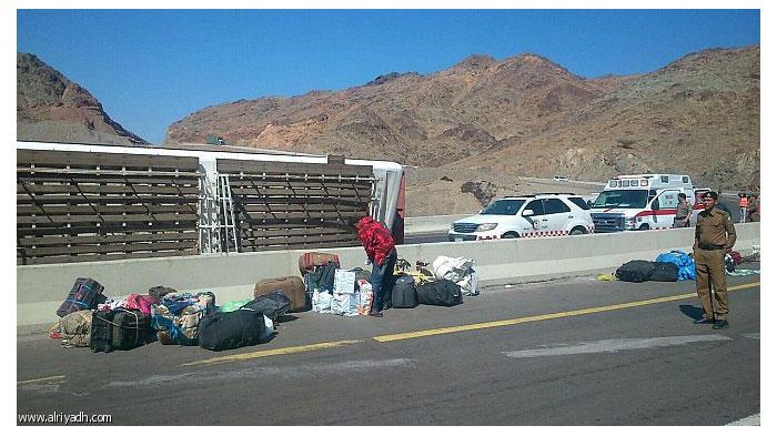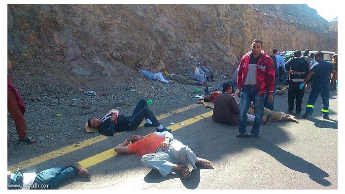 وثق أحد الركاب الناجين من على متن الحافلة التي انقلبت يوم أمس في عقبة الخريطة على طريق تبوك – ضباء اللحظات الأخيرة لانقلاب الحافلة والذي نتج عنه إصابة 34 مصريا من المزارعين الموسميين , عندما توجهت الحافلة من تبوك إلى ميناء ضباء لتوصيل المزارعين للمغادرة إلى بلدهم .