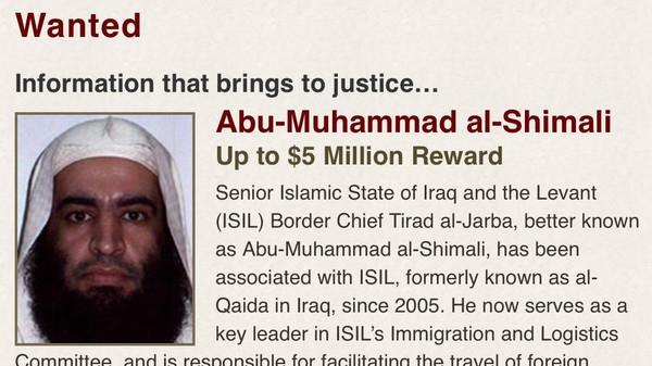 وقالت وزارة الخارجية الأميركية إن طراد محمد الجربا، المعروف باسم أبو محمد الشمالي، هو عضو مهم في تنظيم داعش.