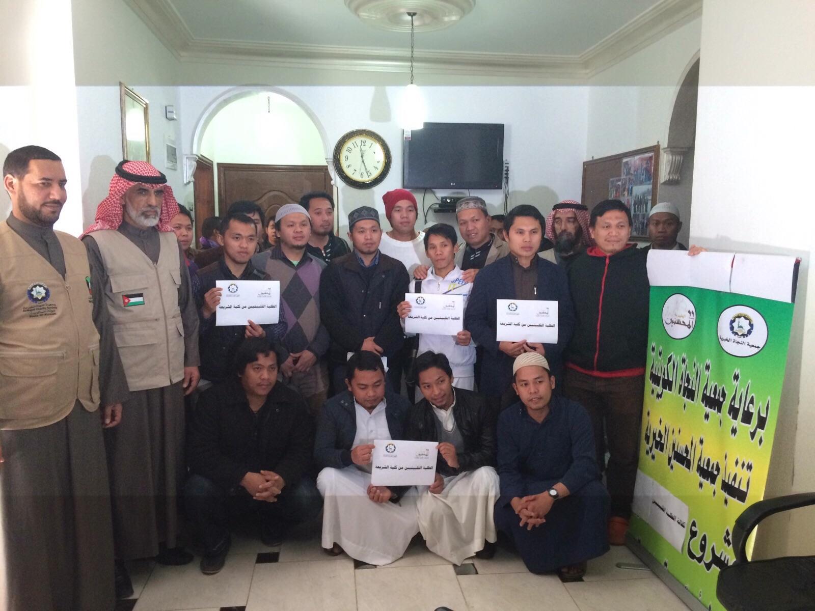 وبين الوندة ان الجمعية قامت بكفالة 85 طالب من الطلبة المتميزين من الجاليتين التايلندية عدد ( 35 طالب ) والفلبينية ( عدد 50 طالب ) وهم من أبناء الفقراء والايتام الذين يحتاجون للمساندة المادية شهريا، تتراوح كفالة الطالب مابين ( 30 – 40 دينار كويتي شهريا)، لافتا ان كفالة هؤلاء ، وتجدد لهم كل 3 شهور، وقد بدأت مع بداية هذا الفصل الدراسية بالجامعات المختلفة في مملكة الأردن الشقيق في كليات الشريعة والهندسة وغيرها، وناشد الوندة أهل الخير من أبناء الكويت الاتصال على الأرقام : 25644002 أو 55644001/2 أو التوجه إلى مقر اللجنة بمنطقة سلوى، موضحا أن أبواب اللجنة مفتوحة لجميع من يرغب في فعل الخير.