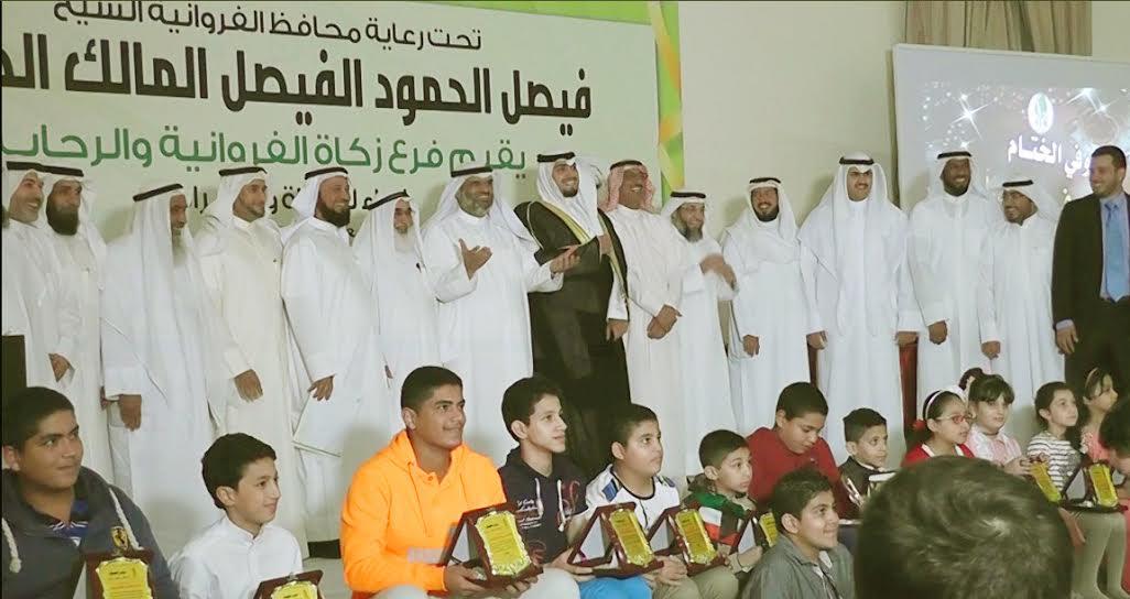 تحت رعاية محافظ الفروانية الشيخ  فيصل الحمود الفيصل المالك الصباح أقام فرع زكاة الفروانية والرحاب في نماء للزكاة والخيرات في جمعية الإصلاح الاجتماعي بصالة أفراح العارضية الحفل الأول لتكريم الطلبة الأيتام المتفوقين دراسيا حيث أنابالشيخ حمود العلي المالك الصباحلحضور الحفل.
