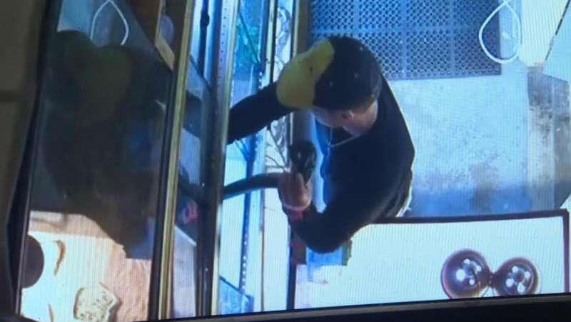 ويُظهر الفيديو اللص وهو يمد يده في الصندوق الزجاجي ويسحب الحية التي يبلغ طولها حوالى 60 سنتيمتراً، ويضعها في ملابسه.