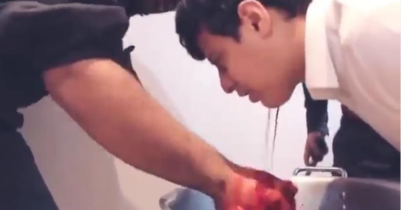 ضبطت شرطة الرياض أمس السبت مجموعة أشخاص نشروا مقطع فيديو يظهر فيه أحدهم وهو يتظاهر بنحر ابنه، وتقديم مادة سائلة تشبه الدم لضيوفه لغسل أيديهم، إمعاناً في إكرامهم على حد زعمه.