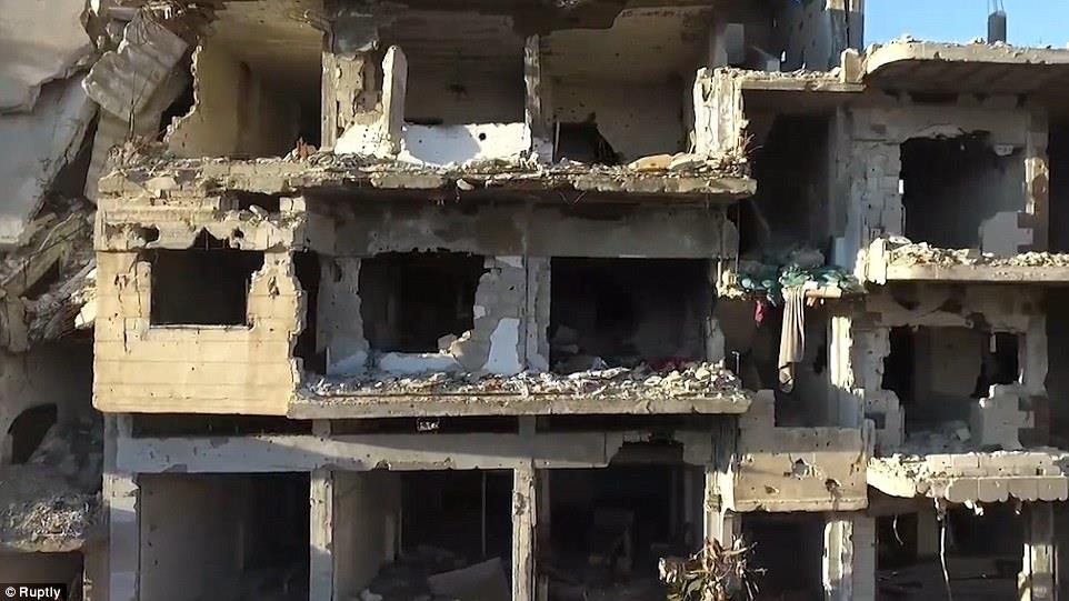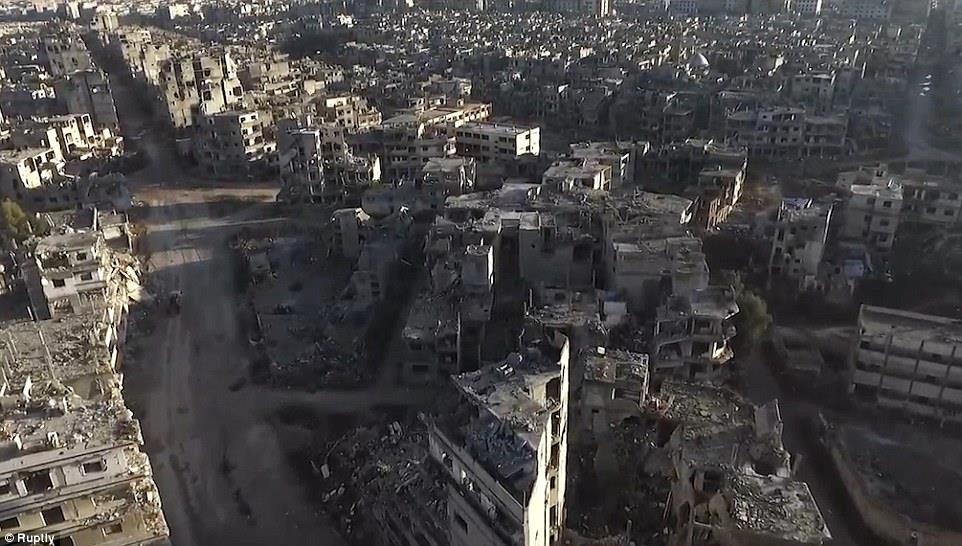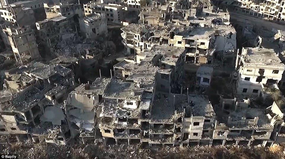 وتحولت حمص ثالث أكبر المدن السورية، كما توضح الصور التي التقطت بواسطة طائرة بدون طيار ونشرتها صحيفة "ديلي ميل"، إلى مدينة أشباح فحطام المباني والأنقاض والقذائف الفارغة هي حالياً كل ما تمتلكه تلك المدينة والتي كانت مركزا صناعيا هاما للغاية.