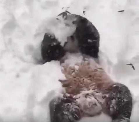 بالفيديو- الباندا «تيان تيان» وهو يستمتع باللعب بالثلج يوم أمس