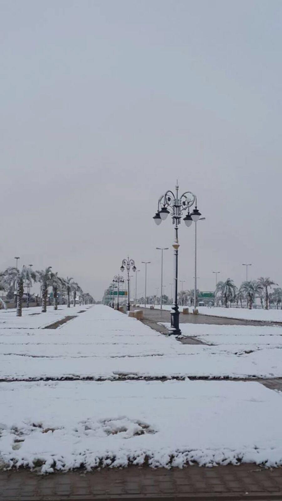 شهدت المناطق الشمالية في المملكة العربية السعودية، الخميس، تساقط كميات كبيرة من الثلوج مع انخفاض شديد لدرجات الحرارة، مما استدعى تعليق الدراسة.