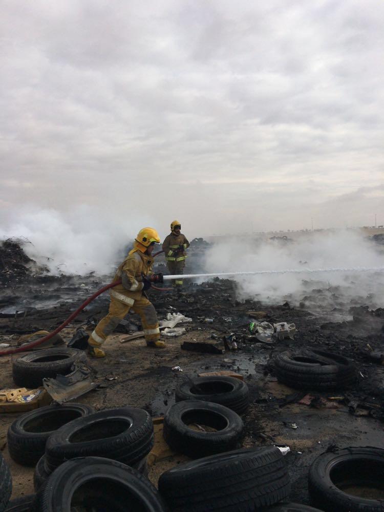 سيطرت فرق الإطفاء قبل قليل على حريق اندلع في اطارات في سكراب النعايم، وفي التفاصيل تلقى مركز عمليات الإدارة العامة للإطفاء بلاغا يفيد عن نشوب حريق في عدد من الإطارات بمساحة ١٠٠ متر٢ .