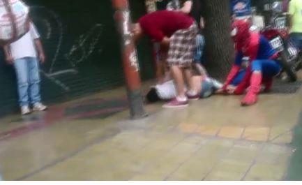 وحاول الرجل سرقة حقيبة سيدة ولكن تم الإمساك به، ولم تعرف حتى الان هوية المنقذ "الرجل العنكبوت".