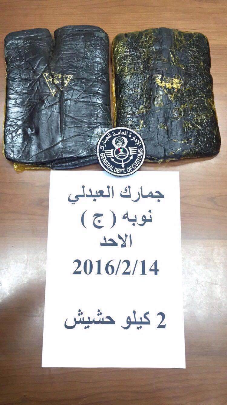 تفاصيل الضبطية جاءت بعد توجيهات من مدير عام ادارة الجمارك خالد عبدالله السيف بالتدقيق والحرص اثناء تفتيش المركبات والشاحنات القادمة من وإلى المنافذ وباشراف مساعد مدير المنافذ البرية عدنان القضيبي وبتواجد مراقب جمارك العبدلي وخباري العوازم تمكن رجال جمارك العبدلي من احباط محاولة وافد سوري بحوزته كمية 2 كيلو حشيش ولكن يقظة رجال الجمارك كانت له بالمرصاد بعد تفتيش محتوياته ومركبته وعليه تم مصادرة المضبوطات وتحويل المتهم الى الجهة المختصة لعمل اللازم بحقه .