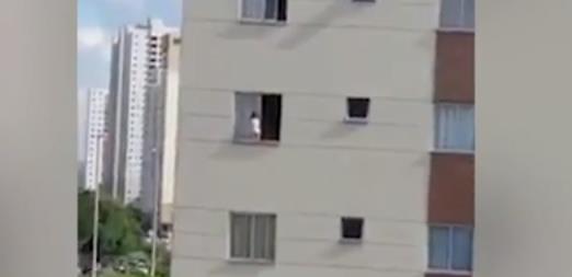 أظهر مقطع فيديو نشر على موقع يوتيوب الإلكتروني طفلاً وهو يمشي على الحافة الخارجية لنافذة منزله الواقع في الطابق الثالث في إحدى الضواحي البرازيلية.