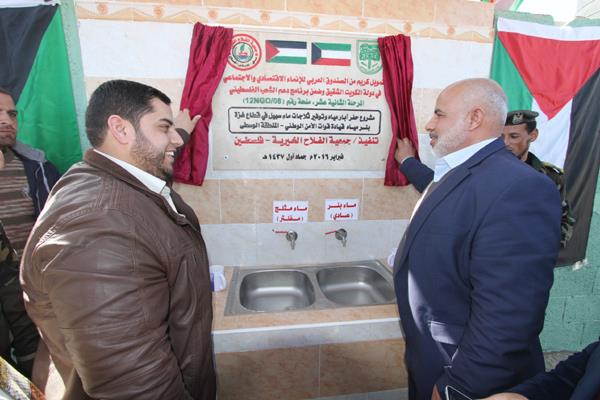 افتتحت جمعية الفلاح الخيرية في فلسطين، اليوم مشروع بئر مياه مع توفير ثلاجات مياه باردة ومعرش ماء سبيل لصالح مقر قيادة قوات الأمن الوطني في محافظة الوسطى وسط قطاع غزة، والذي يأتي بتمويل من الصندوق العربي للإنماء الاقتصادي والاجتماعي في دولة الكويت الشقيقة تحت إطار برنامج دعم الشعب الفلسطيني “المرحلة الثانية عشر”