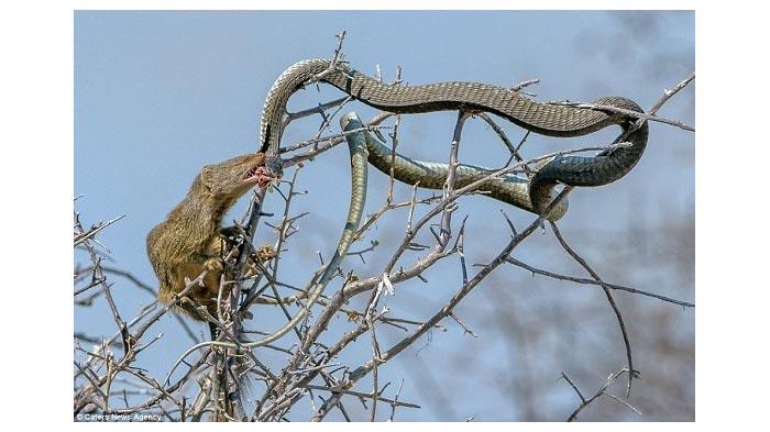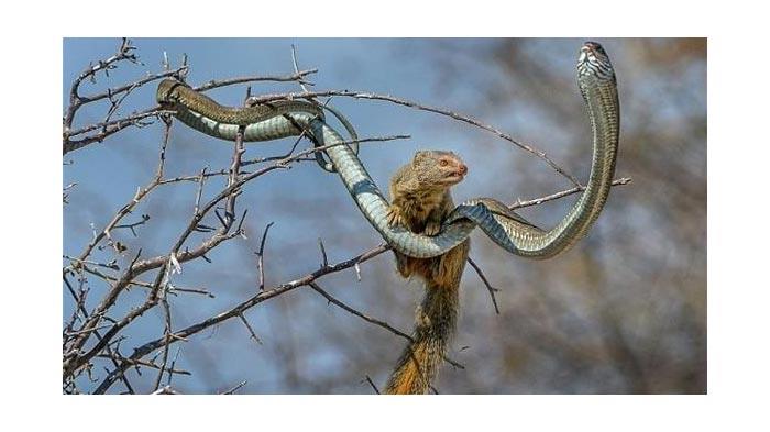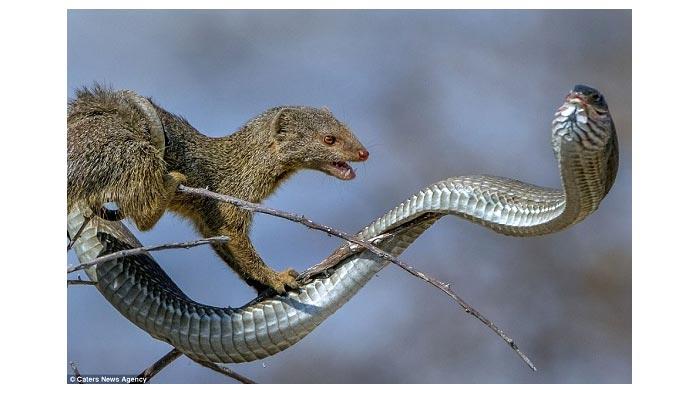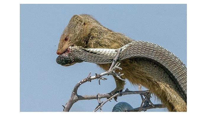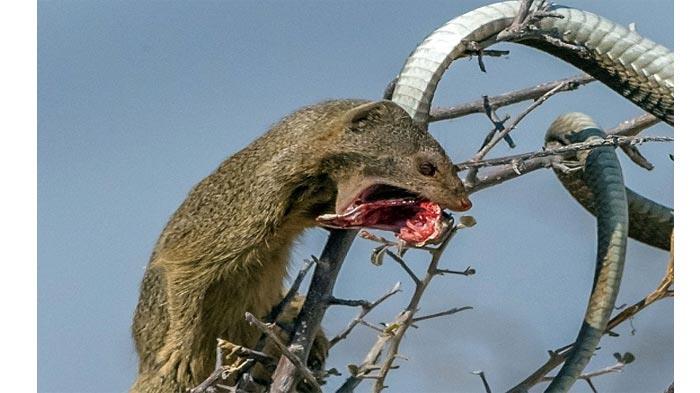 بالصور - نمس شرس يقتل ثعباناً ساماً